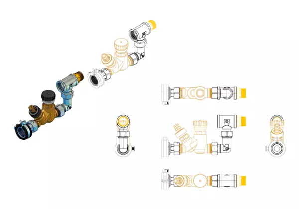 • T-Stück und Bogen mit 3/4" ÜW für horizontalen Anschluss von Zirkulationsventilen
