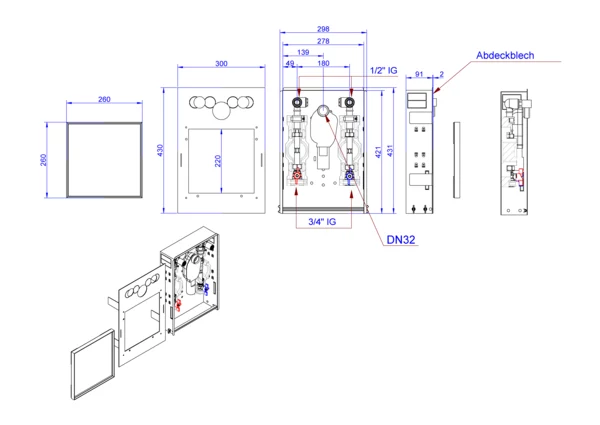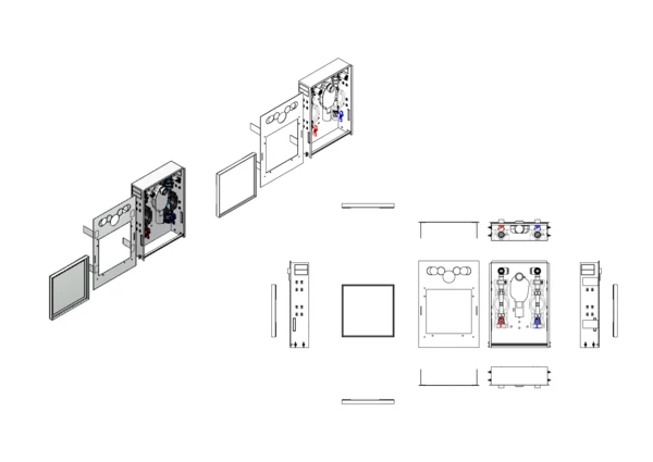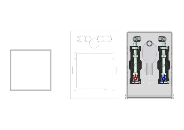 Dadurch ist die Station für den Einbau von barrierefreien Waschtischen mit Rollstuhlunterfahrung geeignet. Über die Abdeckung als Fliesenrahmen sind die bauseits eingebauten Wasserzähler für die Ablesung und den Wechsel jederzeit zugänglich.