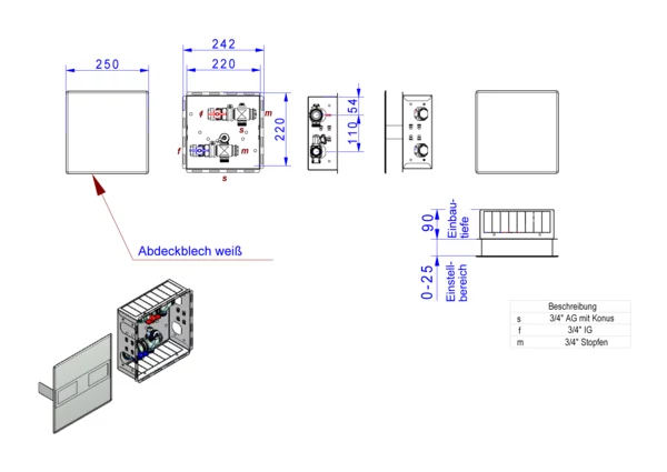 Artikelabmessung: B x H x T: 250 x 250 x 90 mm