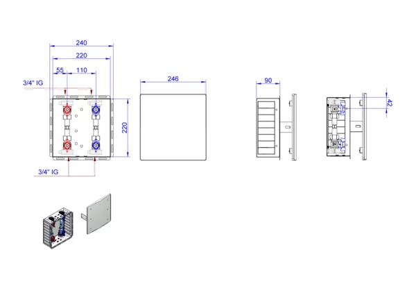 246 x 246 x 108 mm