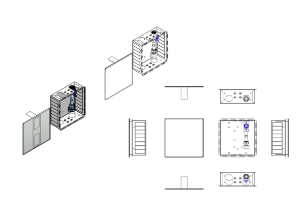 Wasserzählereinbaustation mit Abdeckung glatt in weiß RAL 9016, mit Absperrungen für Trinkwasser kalt