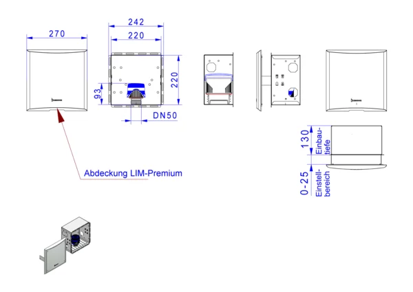 Rohrbelüftereinbaustation mit Abdeckung Limodor Premium, zur Belüftung von Abwasserleitungen.