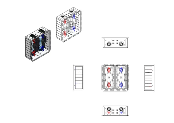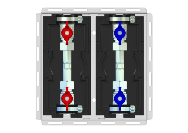 Wasserzählereinbaustation ohne Abdeckung, mit Absperrungen für Trinkwasser kalt + warm und Dämmung