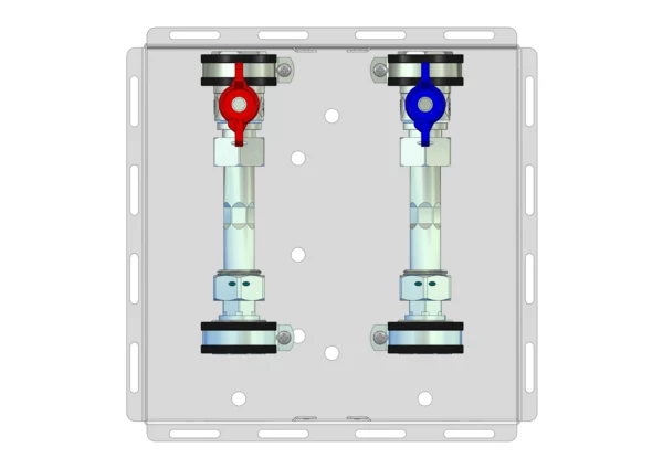 Wasserzählereinbaustation ohne Abdeckung, mit Absperrungen für Trinkwasser kalt + warm