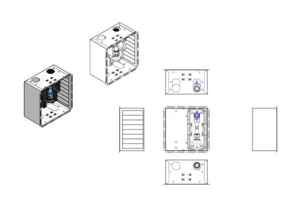 Wasserzählereinbaustation ohne Abdeckung, mit Absperrung für Trinkwasser kalt und Dämmung. Die Einbautiefe 130 mm der Zarge ist besonders geeignet für Wasserzähler mit Funkauslesung.