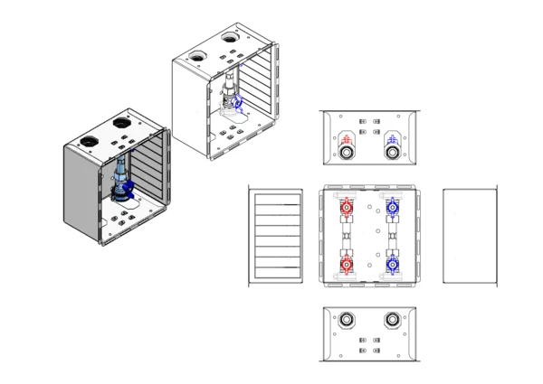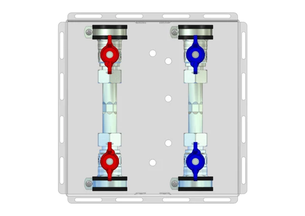 Wasserzählereinbaustation ohne Abdeckung, mit Absperrungen für Trinkwasser kalt + warm. Die Einbautiefe 130 mm der Zarge ist besonders geeignet für Wasserzähler mit Funkauslesung.