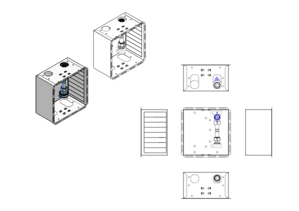 Wasserzählereinbaustation ohne Abdeckung, mit Absperrungen für Trinkwasser kalt. Die Einbautiefe 130 mm der Zarge ist besonders geeignet für Wasserzähler mit Funkauslesung.
