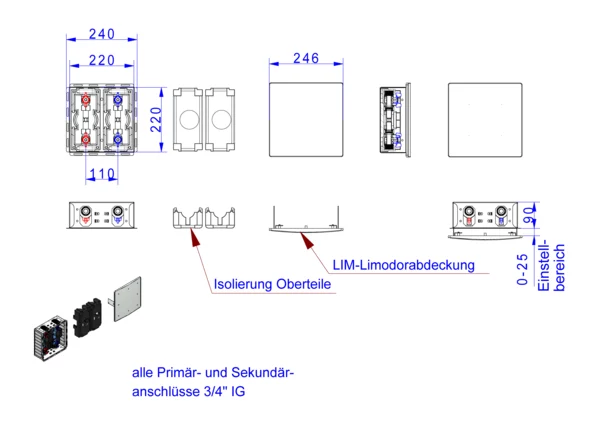 strawa Wasserstation W2-LIM-D,BxHxT: 246 x 246 x 108 mm, Wasserzählervorbereitung Trinkwasser kalt und warm 3/4" Länge 80 mm, mit 2x DVGW-Kugelhahn 3/4", mit EPP-Dämmung, in Wandzarge mit Abdeckung Limodor