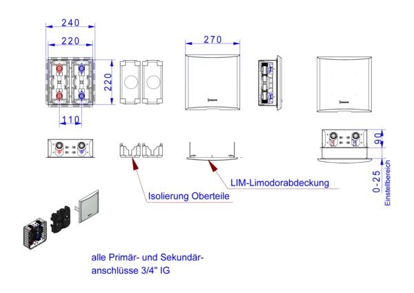 strawa Wasserstation W2-LIM-D-Premium,BxHxT: 272 x 272 x 112 mm, Wasserzählervorbereitung Trinkwasser kalt und warm 3/4" Länge 80 mm, mit 2x DVGW-Kugelhahn 3/4", mit EPP-Dämmung, in Wandzarge mit Abdeckung Limodor Premium