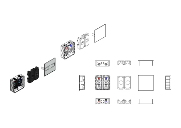 Wasserzählereinbaustation mit Abdeckung glatt in weiß RAL 9016, mit Absperrungen für Trinkwasser kalt + warm und Dämmung