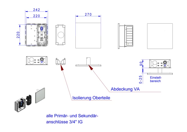 strawa Wasserstation W1-LIM-D-S-Line Typ A,BxHxT: 270 x 270 x 106 mm, Wasserzählervorbereitung Trinkwasser kalt 3/4" Länge 80 mm, mit 1x DVGW-Kugelhahn 3/4", mit EPP-Dämmung, in Wandzarge mit Abdeckung Limodor S-Line