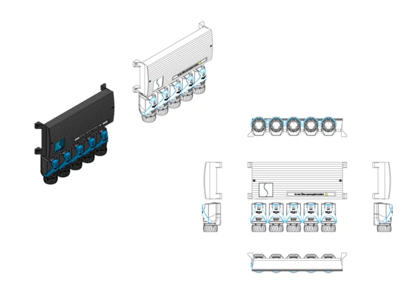 Die Vorverdrahtung ist für einen Anschlussverteiler e-class 18 und Standard-Anschlussstationen H 18 Stationen geeignet. Die intelligent autonomen elektrothermischen Regelantriebe gewährleisten in Kombination mit handelsüblichen Raumthermostaten den automatischen und bedarfsgerechten hydraulischen Abgleich der Heizkreise eines Heizkreisverteilers in Flächenheizungssystemen. Die Regelantriebe sind auf der Klemmleiste vorverdrahtet. Die Klemmleiste wird bauseits im Verteilerschrank über oder neben dem Heizkreisverteiler montiert. Die EGO-Regelantriebe werden auf den Ventileinsätzen (Aufnahme EGO Schnellverschluss) des Rücklaufbalkens aufgeschraubt.