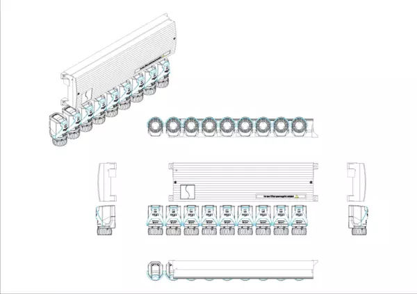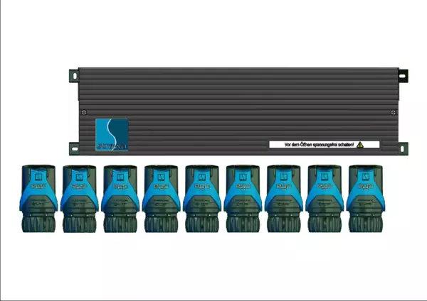 Die Vorverdrahtung ist für einen Anschlussverteiler e-class 18 und Standard-Anschlussstationen H 18 Stationen geeignet. Die intelligent autonomen elektrothermischen Regelantriebe gewährleisten in Kombination mit handelsüblichen Raumthermostaten den automatischen und bedarfsgerechten hydraulischen Abgleich der Heizkreise eines Heizkreisverteilers in Flächenheizungssystemen. Die Regelantriebe sind auf der Klemmleiste vorverdrahtet. Die Klemmleiste wird bauseits im Verteilerschrank über oder neben dem Heizkreisverteiler montiert. Die EGO-Regelantriebe werden auf den Ventileinsätzen (Aufnahme EGO Schnellverschluss) des Rücklaufbalkens aufgeschraubt.