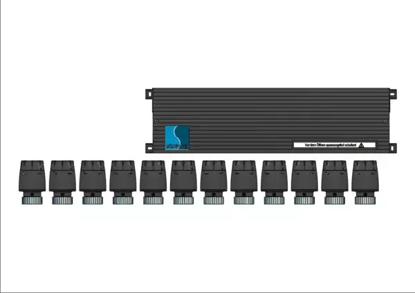 für Standard-Anschlussstationen mit Verteiler e-class 63 und 53, für max. 6 Raumthermostate, Zuordnung der Stellantriebe zu den Raumthermostaten bauseits über Wählrad
