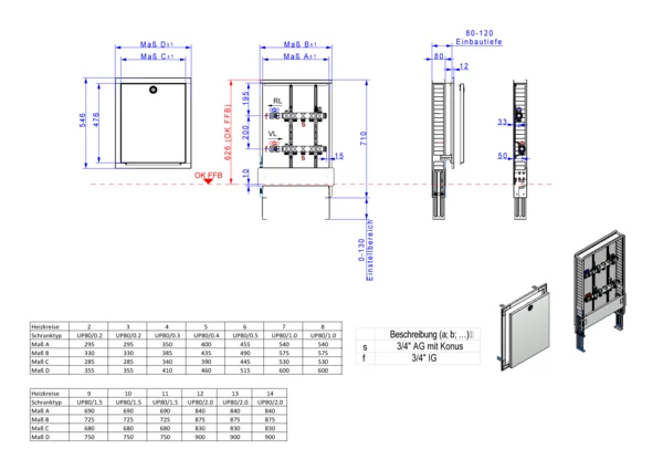 • Nischeneinbauhöhe von OKFFB: 650 mm
