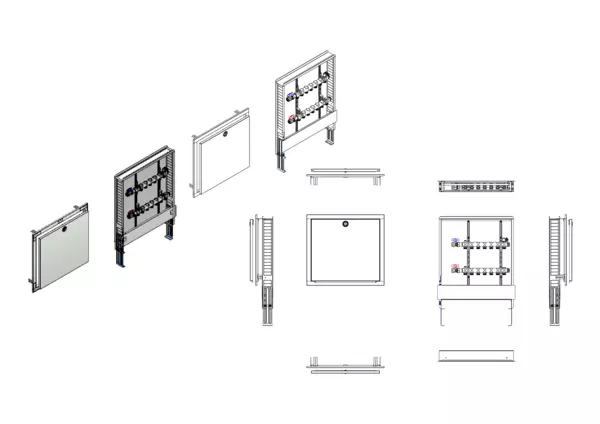 strawa HK-Anschlussstation H 52h 7 Hkr.,BxHxT: 600x725x92 mm, horiz. AG o. WMZ, Verteiler ohne Einbauten, Standard-UP-Schrank mit Frontblende in RAL 9016