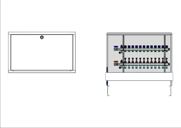 strawa FB-Anschlussstation H 63h 12 Hkr.,BxHxT: 900 x 725 x 92 mm, horiz. AG o. WMZ, Verteiler mit DFA 0-3 l/min + THV M30x1,5, Standard-UP-Schrank mit Frontblende in RAL 9016
