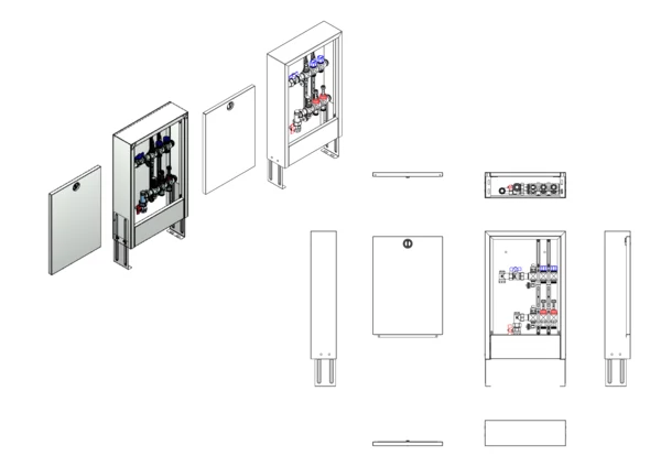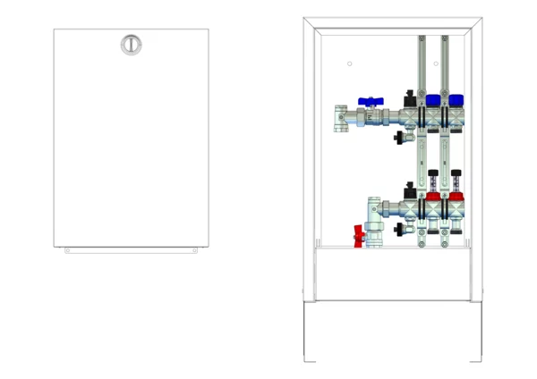 strawa FB-Anschlussstation H 63-AP 2 Hkr.,BxHxT: 392x620x125 mm, vert. AG o. WMZ, Verteiler mit DFA 0-3 l/min + THV M30x1,5, Standard-AP-Schrank in RAL 9016