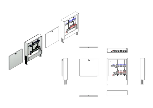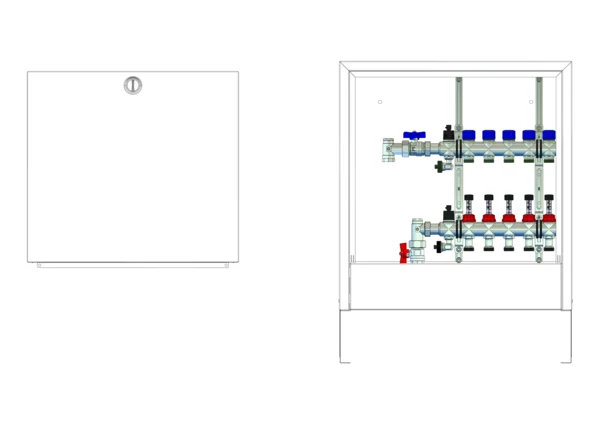 strawa FB-Anschlussstation H 63-AP 5 Hkr.,BxHxT: 582x620x125 mm, vert. AG o. WMZ, Verteiler mit DFA 0-3 l/min + THV M30x1,5, Standard-AP-Schrank in RAL 9016