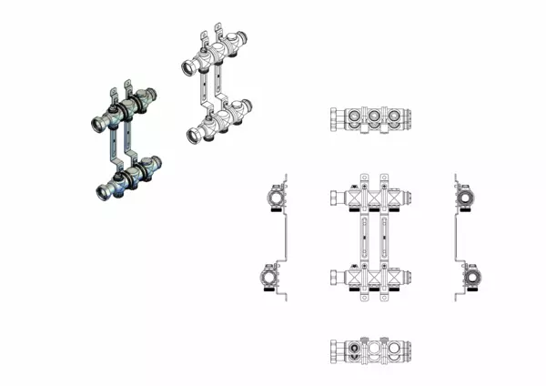 strawa HK-Anschlussverteiler e-class 52 ohne SFE 3 Hkr.,BxHxT: 195x320x67 mm, Entlüftungsventil im VL und RL, Doppelwandhalter 200 mm mit Schrauben u. Dübeln
