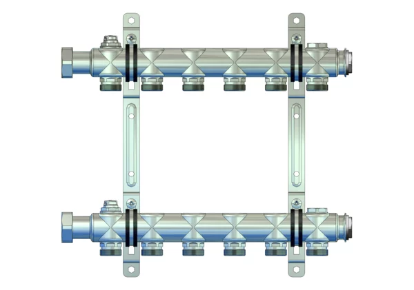 strawa HK-Anschlussverteiler e-class 52 ohne SFE 6 Hkr.,BxHxT: 345x320x67 mm, Entlüftungsventil im VL und RL, Doppelwandhalter 200 mm mit Schrauben u. Dübeln