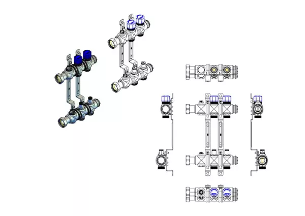 • Heizkreisabgänge mit Anschlussgewinde 3/4" AG mit Eurokonus, passend für Klemmverschraubungen
