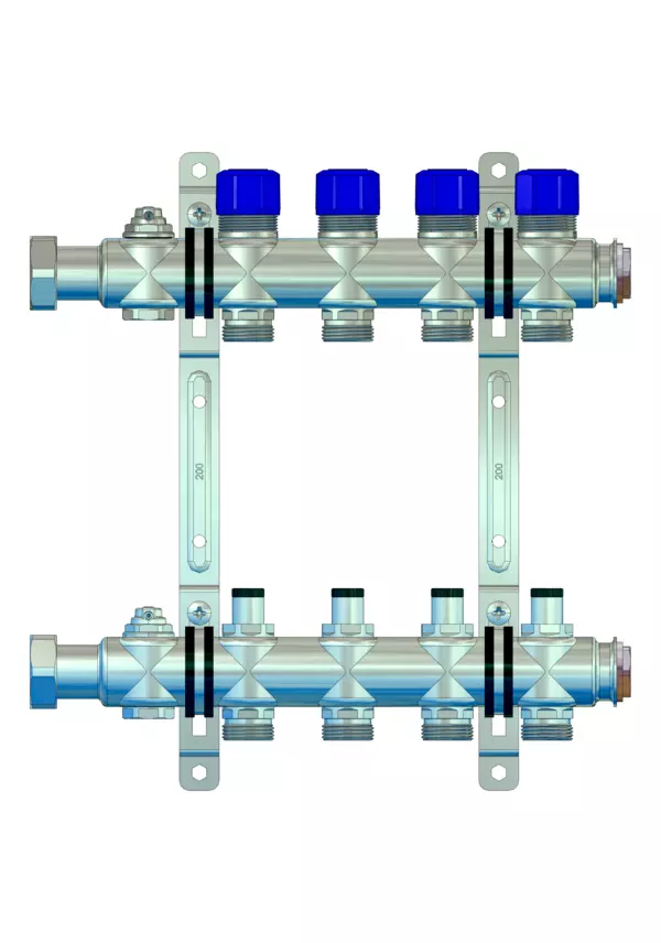 • Heizkreisabgänge mit Anschlussgewinde 3/4" AG mit Eurokonus, passend für Klemmverschraubungen