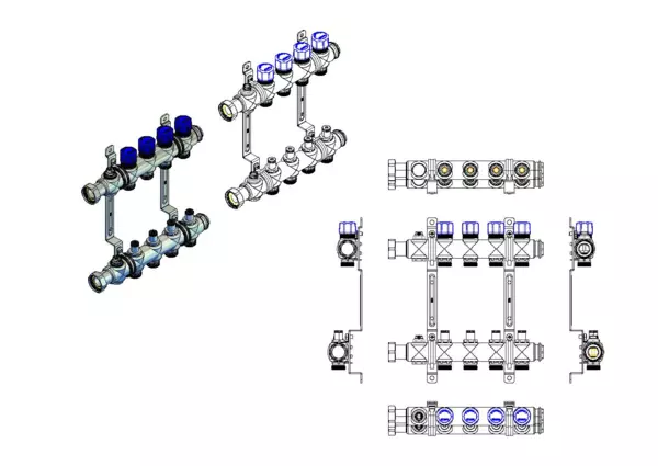 • Vorlaufbalken mit integrierten Regulierventilen mit Memoryfunktion (Kvs=2,88 m³/h)