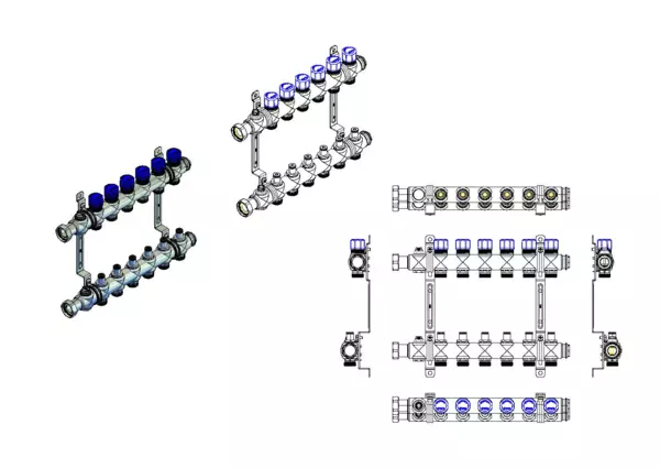 • Heizkreisabgänge mit Anschlussgewinde 3/4" AG mit Eurokonus, passend für Klemmverschraubungen