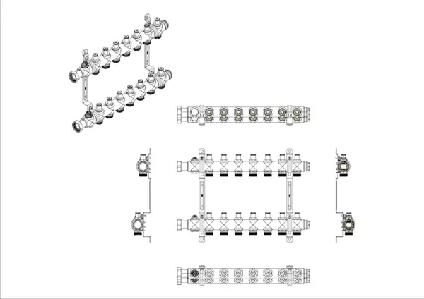 • Heizkreisabgänge mit Anschlussgewinde 3/4" AG mit Eurokonus, passend für Klemmverschraubungen