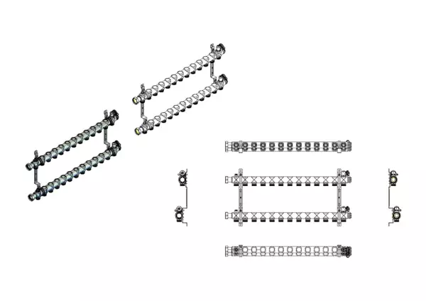 • Vorlaufbalken und Rücklaufbalken ohne Absperr- bzw. Regulierventile