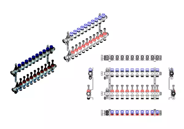 • Heizkreisabgänge mit Anschlussgewinde 3/4" AG mit Eurokonus, passend für Klemmverschraubungen