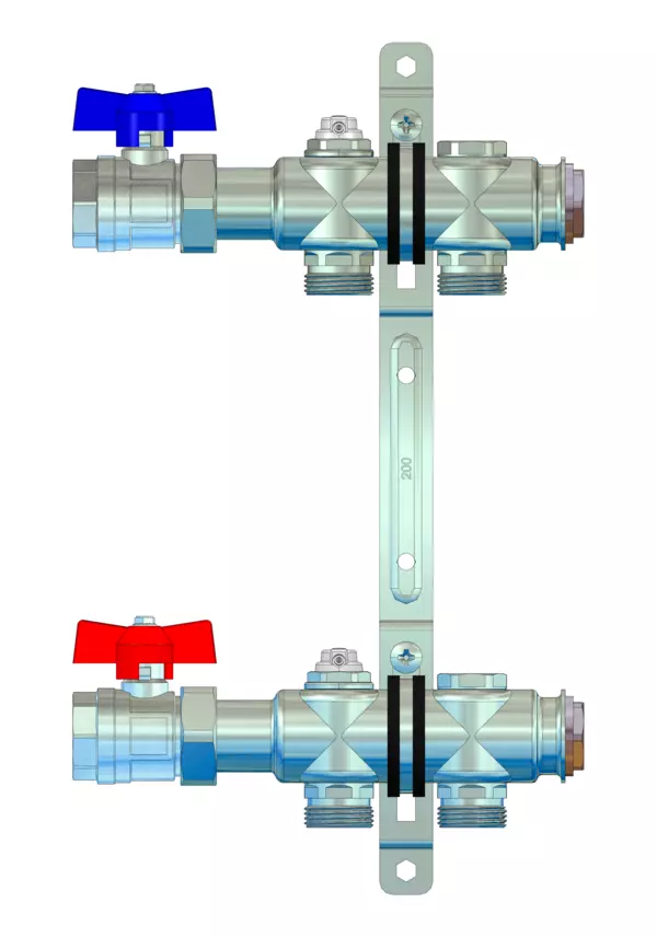 strawa HK-Anschlussverteiler e-class 52 ohne SFE mit 3/4''KH 2 Hkr.,BxHxT: 195 x 320 x 67 mm, 3/4" Kugelhahn, Entlüftungsventil im VL und RL, Doppelwandhalter 200 mm mit Schrauben u. Dübeln