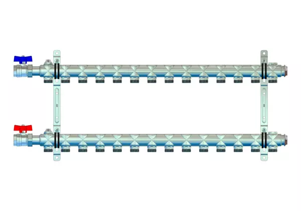 strawa HK-Anschlussverteiler e-class 52 ohne SFE mit 3/4''KH 14 Hkr.,BxHxT: 795x320x67 mm, 3/4" Kugelhahn, Entlüftungsventil im VL und RL, Doppelwandhalter 200 mm mit Schrauben u. Dübeln