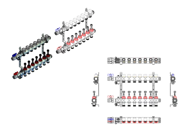 • Heizkreisabgänge mit Anschlussgewinde 3/4" AG mit Eurokonus, passend für Klemmverschraubungen