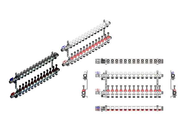 strawa FB-Anschlussverteiler e-class 87 mit SFE, mit 3/4''KH 13 Hkr.,BxHxT: 745x320x67 mm, 3/4" Kugelhahn, DFA min/max. im VL u THV m Q-Tech Durchflussregler M30x1,5 im RL, SFE-Ventil u Entlüftungsv. im VL + RL, Doppelwandhalt m Schrauben u. Dübeln