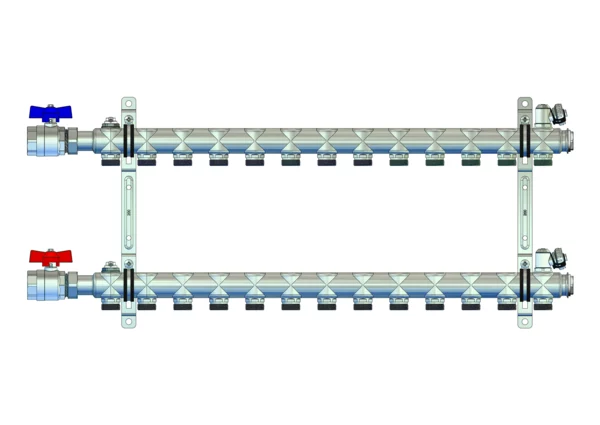 • Heizkreisabgänge mit Anschlussgewinde 3/4" AG mit Eurokonus, passend für Klemmverschraubungen