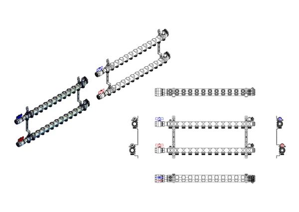 • Vorlaufbalken und Rücklaufbalken ohne Absperr- bzw. Regulierventile