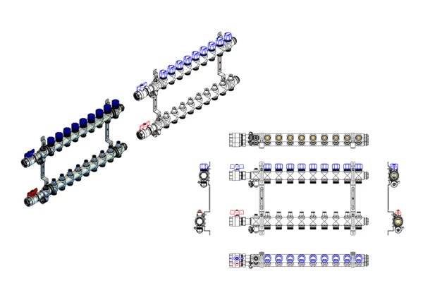 • Vorlaufbalken mit integrierten Regulierventilen mit Memoryfunktion (Kvs=2,88 m³/h)