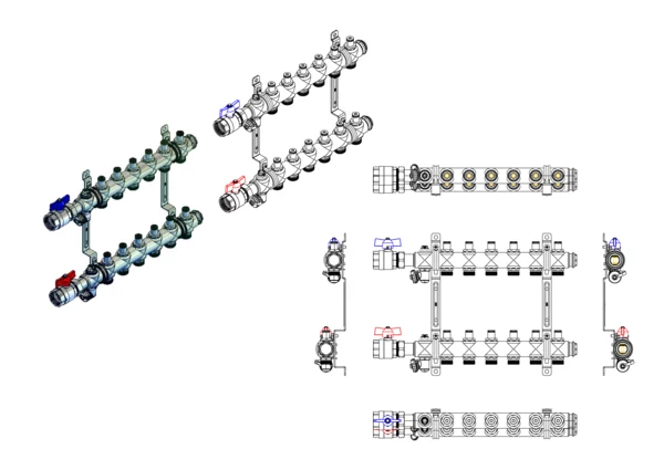 • Heizkreisabgänge mit Anschlussgewinde 3/4" AG mit Eurokonus, passend für Klemmverschraubungen