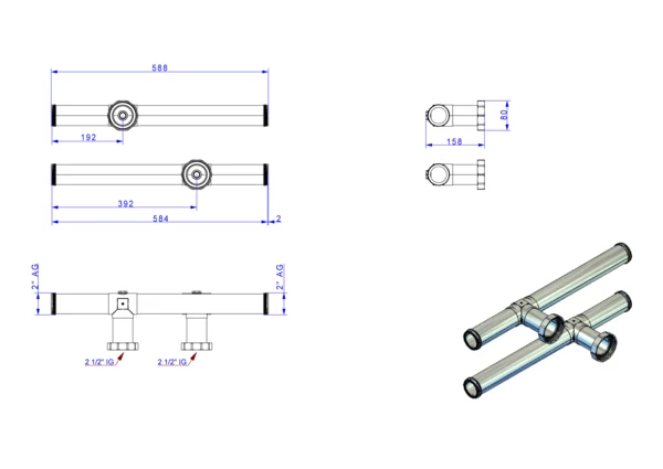 Die Verbindungsstücke DN 50 sind für die Kopplung von zwei Industrie- und Soleverteilern konzipiert.