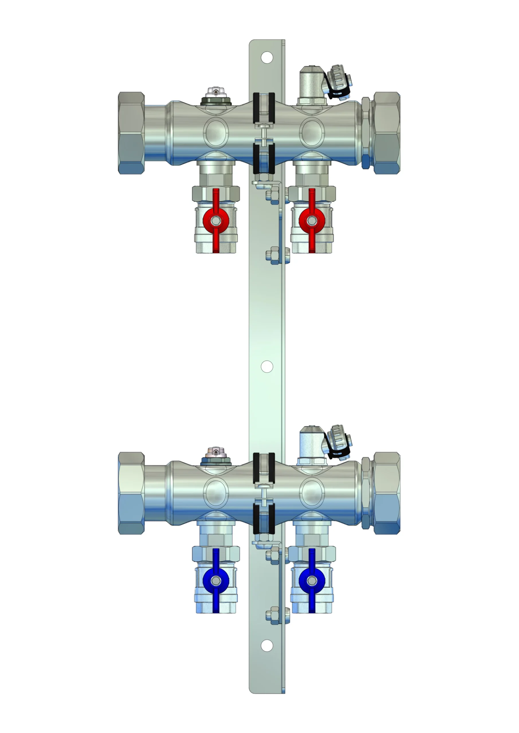 strawa Industrie- und Soleverteiler e-class 37-3/4'' 2 Hkr.,BxHxT: 295x545x258 mm, 3/4"Kugelhähne im VL und RL, Spül-, Füll- und Entleerv. u Entlüftungsv. im VL + RL, Doppelwandhalter 300mm m. Schrauben u Dübeln