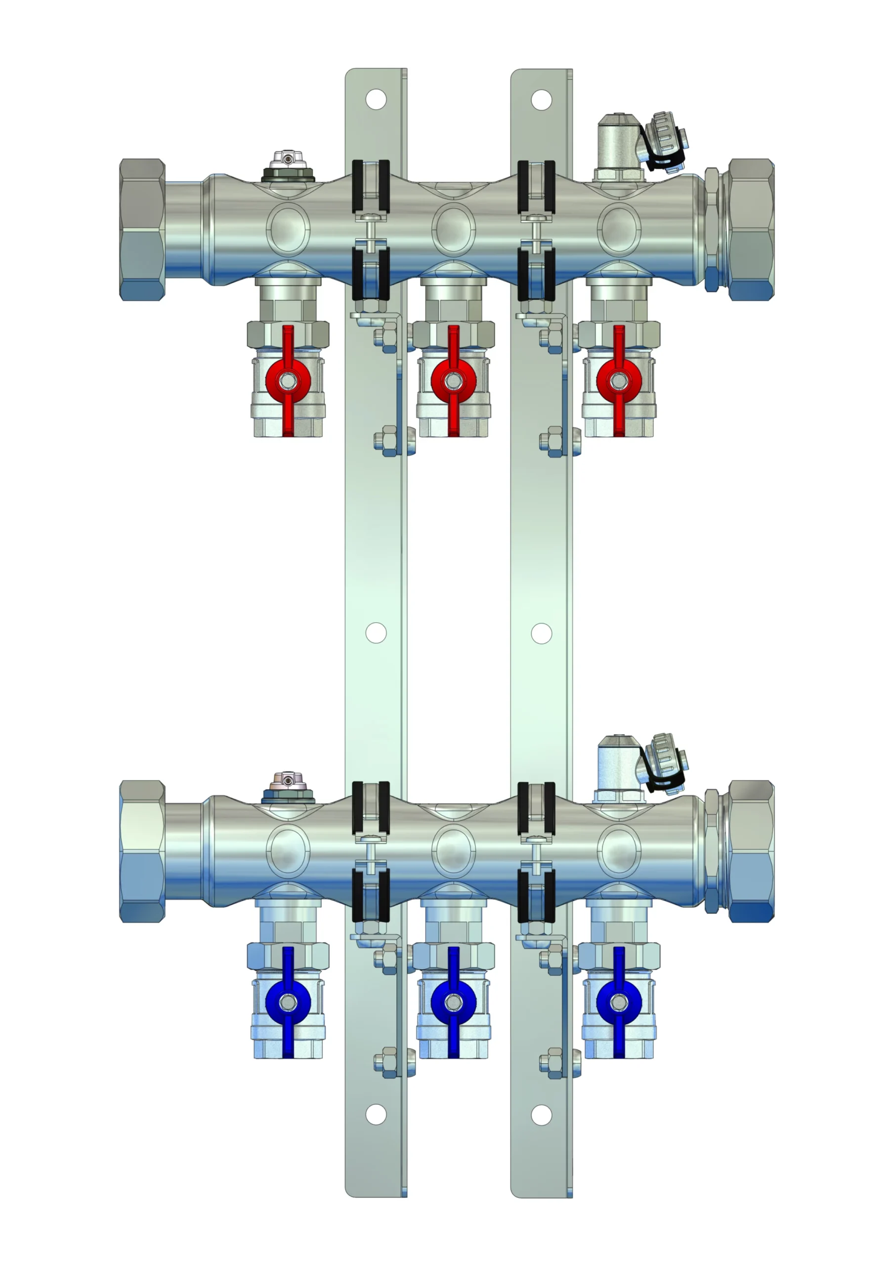 strawa Industrie- und Soleverteiler e-class 37-3/4'' 3 Hkr.,BxHxT: 375x545x258 mm, 3/4"Kugelhähne im VL und RL, Spül-, Füll- und Entleerv. u Entlüftungsv. im VL + RL, Doppelwandhalter 300mm m. Schrauben u Dübeln