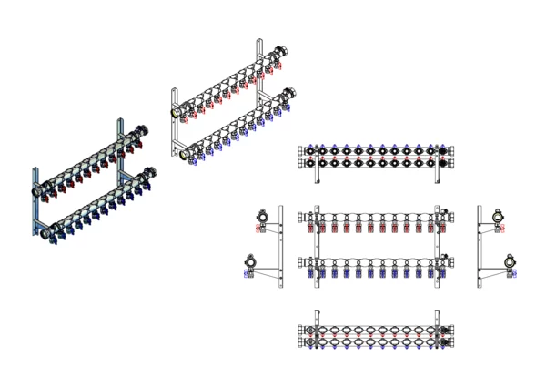1. Kugelhähne im Vor- und Rücklaufbalken, Spül-, Füll- und Entleerventil und Entlüftungsventil im Vor- und Rücklaufbalken, Doppelwandhalter 300mm mit Schrauben u Dübeln