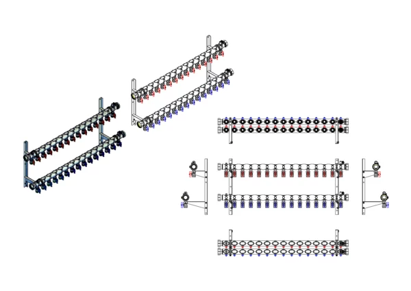 Der Anschlussverteiler ist für Flächenheizungs- und -kühlungssysteme sowie Soleanwendungen konzipiert. Alle Heizkreise können sowohl im Vor- als auch im Rücklauf abgesperrt werden.