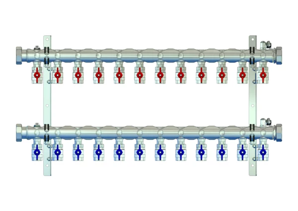 strawa Industrie- und Soleverteiler e-class 37-1'' 12 Hkr.,BxHxT: 1095x545x258 mm, 1"Kugelhähne im VL und RL, Spül-, Füll- und Entleerv. u Entlüftungsv. im VL + RL, Doppelwandhalter 300mm m. Schrauben u Dübeln