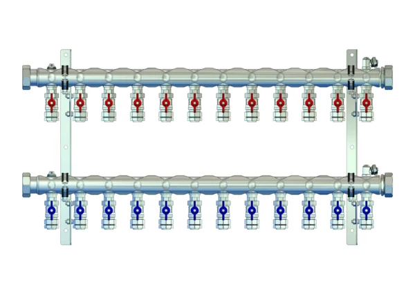 Der Anschlussverteiler ist für Flächenheizungs- und -kühlungssysteme sowie Soleanwendungen konzipiert. Er ermöglicht das Absperren der Heizkreise sowohl im Vor- als auch im Rücklauf. Jeder Heizkreis ist mit Klemmverschraubungen ausgestattet.