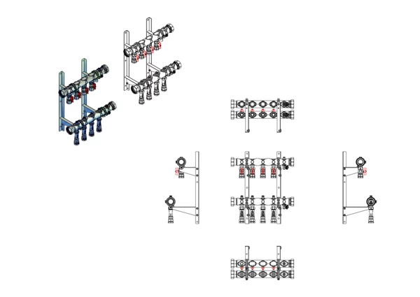 • Vorlaufbalken mit angehangenen 3/4" Kugelhähne (Flügelgriff rot) pro Heizkreis