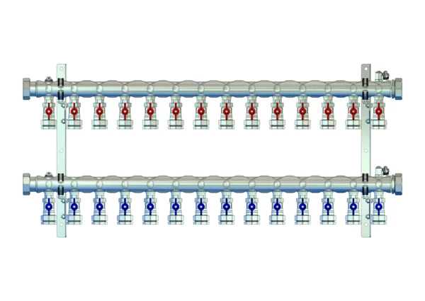 Der Anschlussverteiler ist für Flächenheizungs- und -kühlungssysteme sowie Soleanwendungen konzipiert. Er ermöglicht das Absperren der Heizkreise sowohl im Vor- als auch im Rücklauf. Jeder Heizkreis ist mit Klemmverschraubungen ausgestattet.
