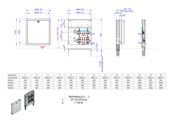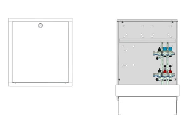strawa Comfort Anschlussstation FBH-18-X-C80 2 Hkr.,BxHxT: 600 x 775 x 92 mm, ohne Anschlussgarnitur, Verteiler mit DFA min/max + THV für EGO-Aufnahme, Comfort-UP-Schrank mit Frontblende in RAL 9016